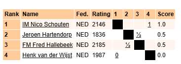 | Uitslagen snelschaak competitie |